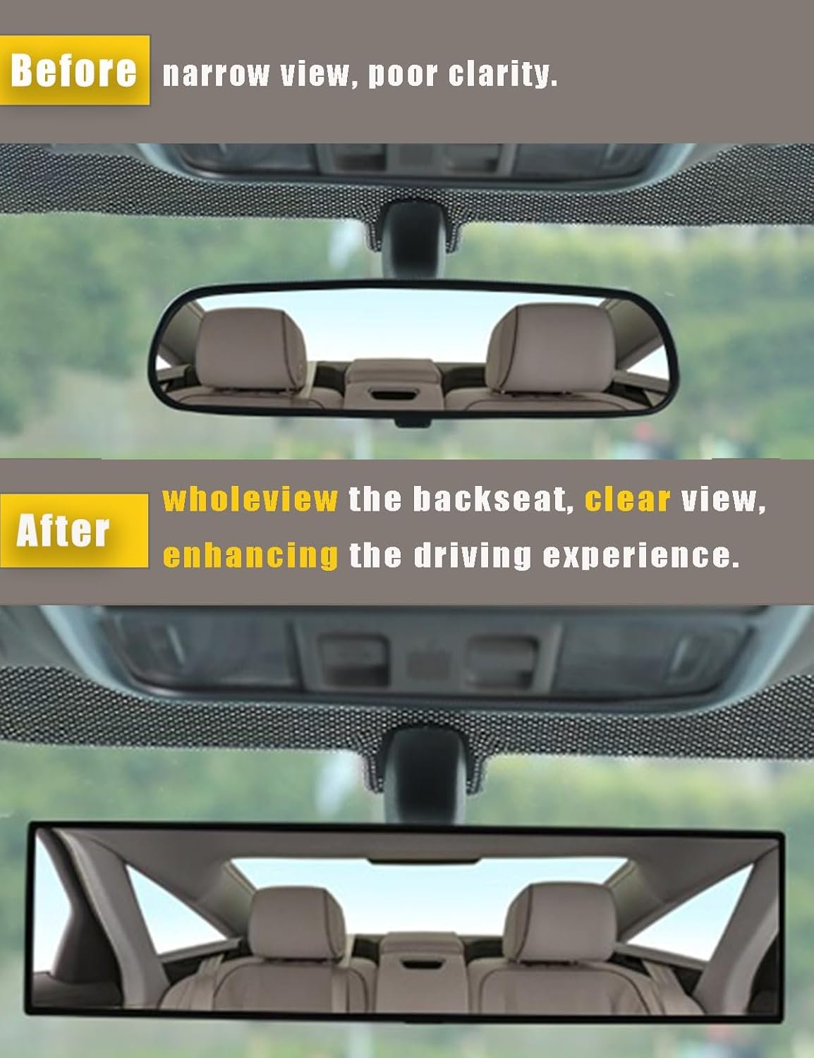 - Wider View, Safer Drive: Experience a broader field of vision with the curved wide-angle rearview mirror. Easily spot blind spots, backseat, and parking obstacles for safer driving.