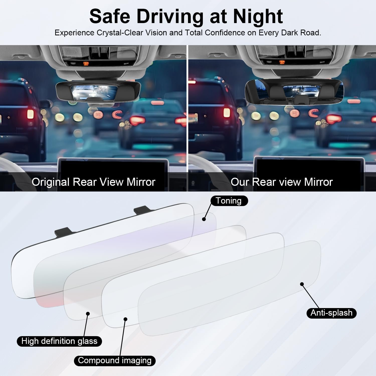 - CLEAR IMAGE: This convex rearview mirror offers a wider viewing angle than the original interior mirror to widen the field of vision and eliminate blind spots while driving.